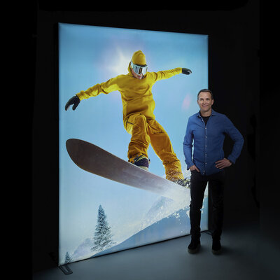 Light Frame ist eine tragbare LED-Leuchtbox, die Ihre Marke zum Strahlen bringt. Der hinterleuchtete Aluminiumrahmen für Stoffdrucke ermöglicht eine werkzeuglose Montage und überzeugt mit aussergewöhnlicher Lichtqualität. Das modulare Design schafft flexible sowie hochwertige Auftritte für jedes Event.